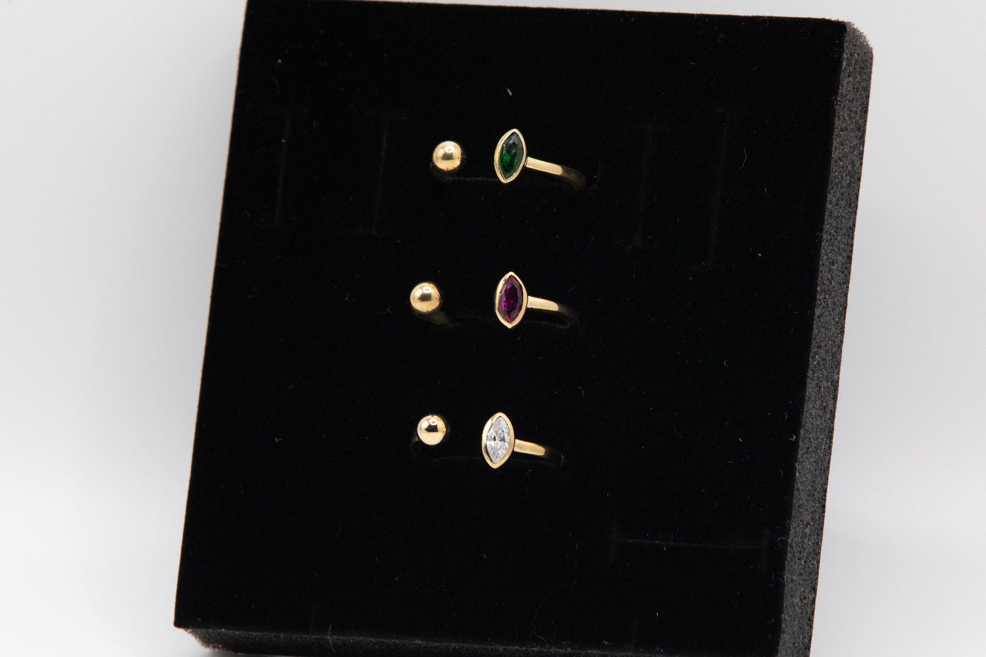 This adjustable birthstone ring is made of 14k gold and natural stones. The ring can be easily adjusted to fit your finger, ensuring a comfortable and secure fit. Add a touch of elegance and personalization to any outfit with this versatile and timeless piece.